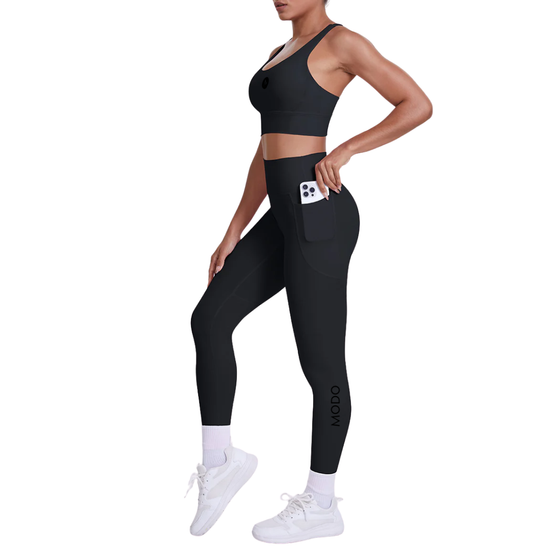 Elevate your movement and mindful moments with the Modo Yoga Sports Bra + High Waist Leggings Two-piece set — a harmony of performance, comfort, and elevated style designed to carry you from your mat to your day.